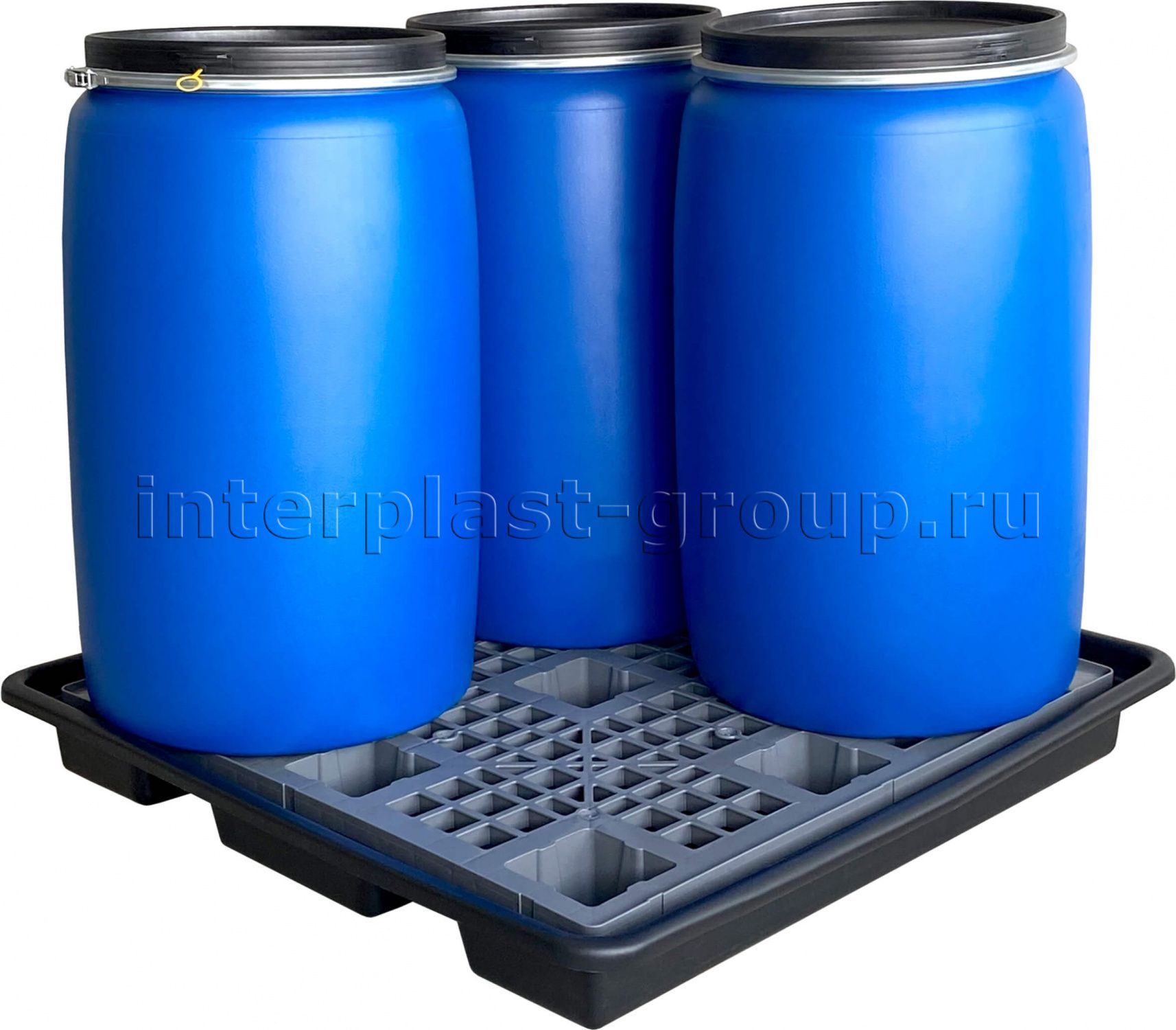Поддон пластиковый для четырех бочек 1276x1276x160 мм