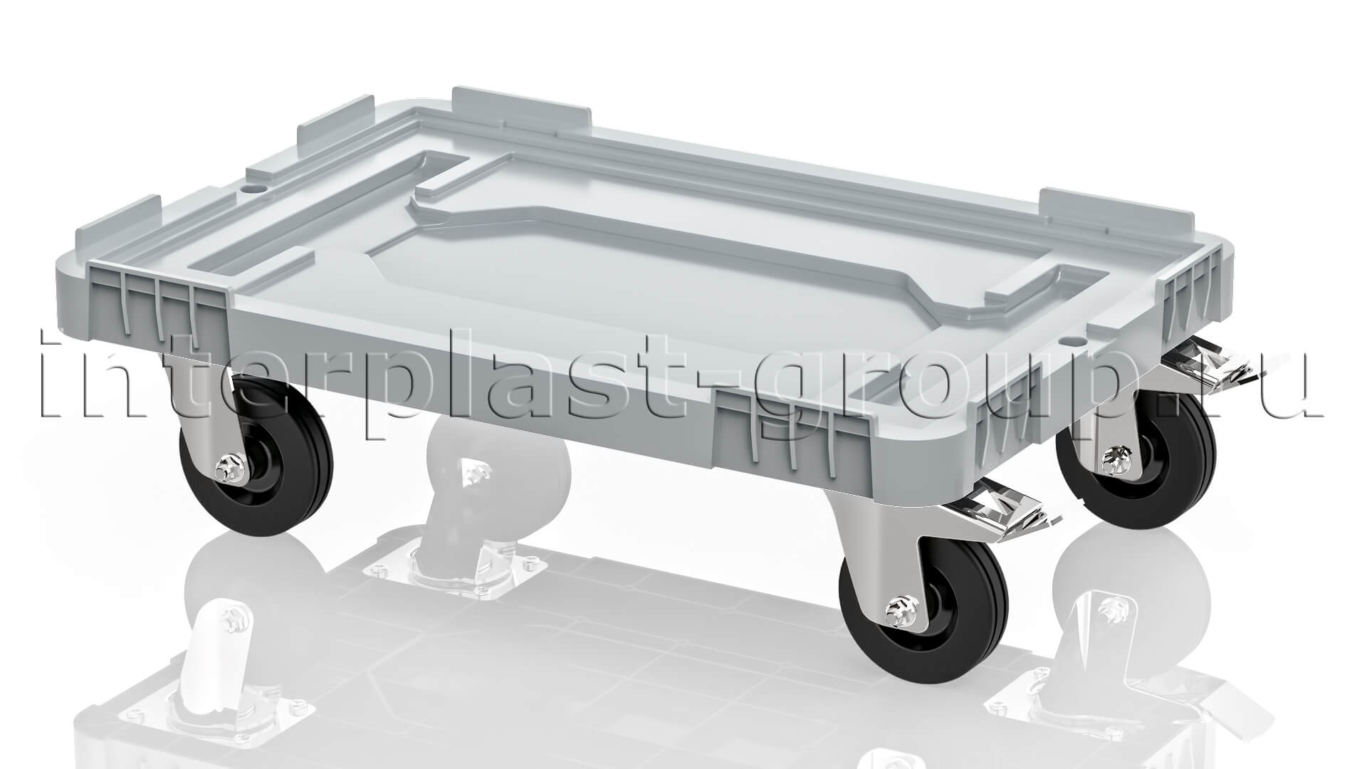Тележка пластиковая сплошная 2 колеса с тормозом серая в Липецке