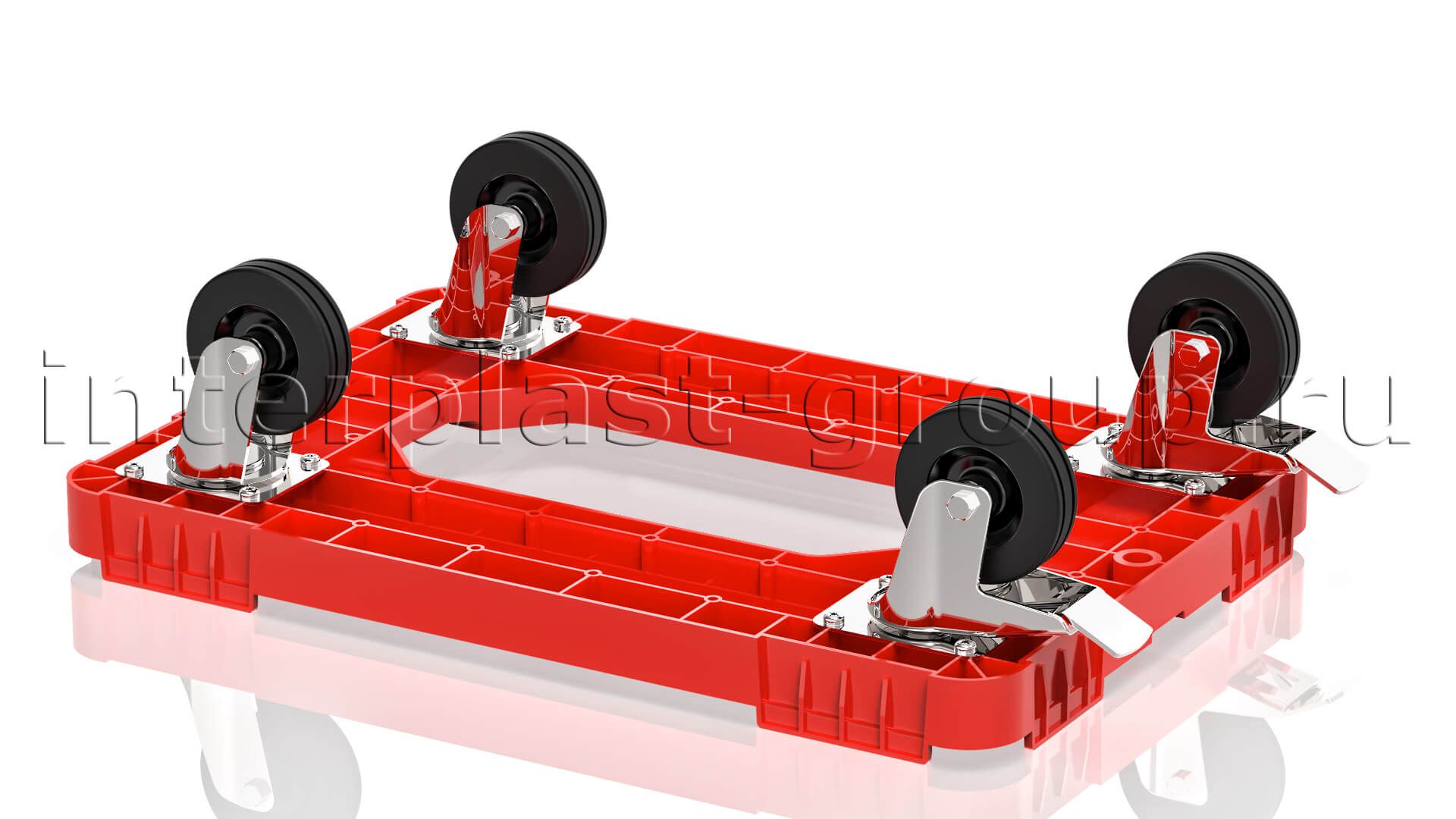 Тележка пластиковая с отверстием 2 колеса с тормозом красная в Липецке