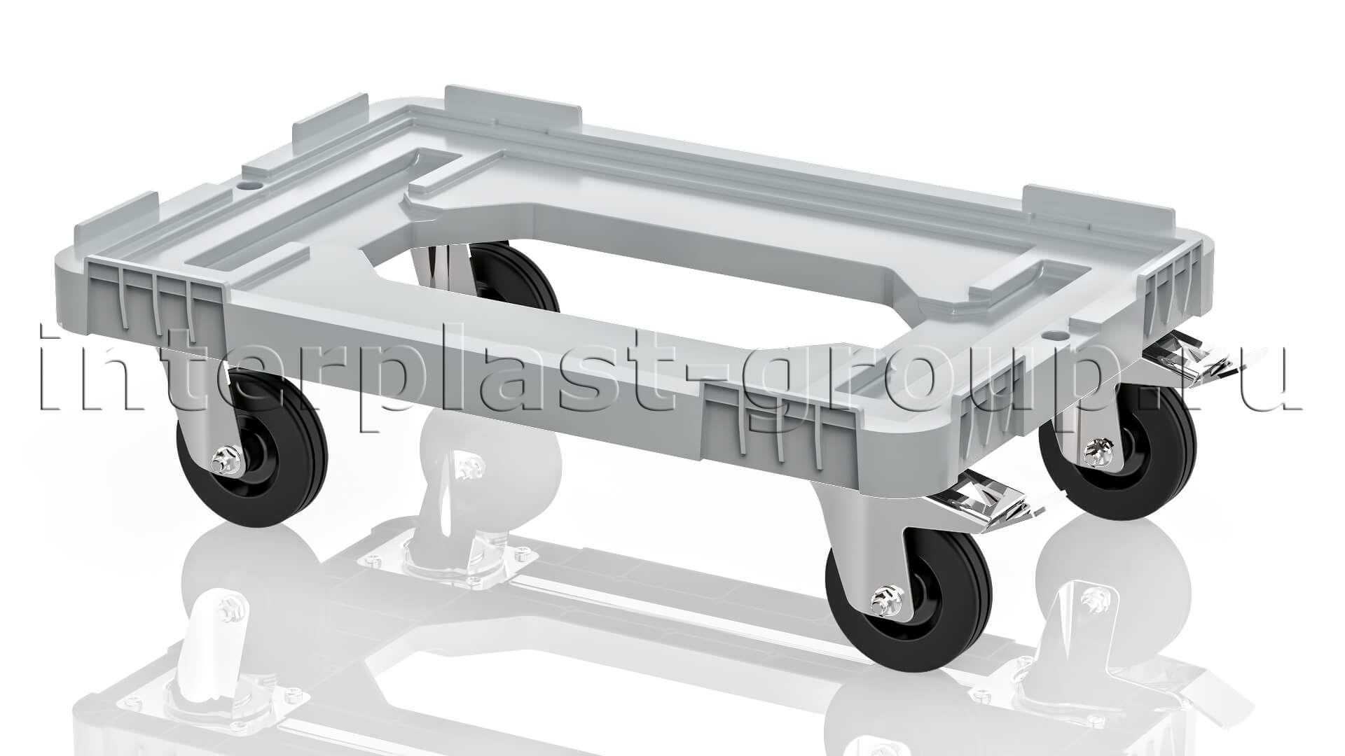 Тележка пластиковая с отверстием 2 колеса с тормозом усиленная серая в Липецке