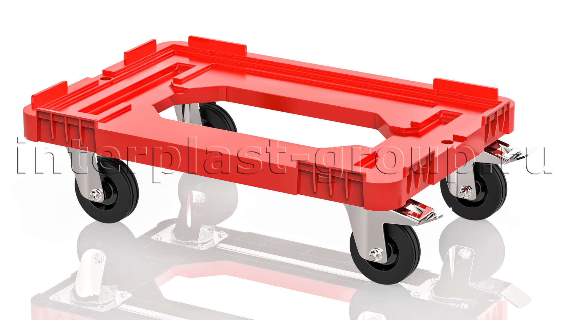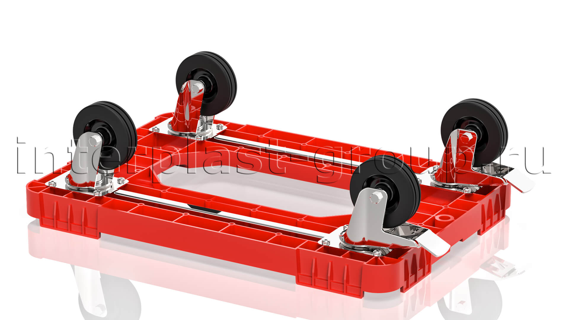 Тележка пластиковая с отверстием 2 колеса с тормозом усиленная красная в Липецке