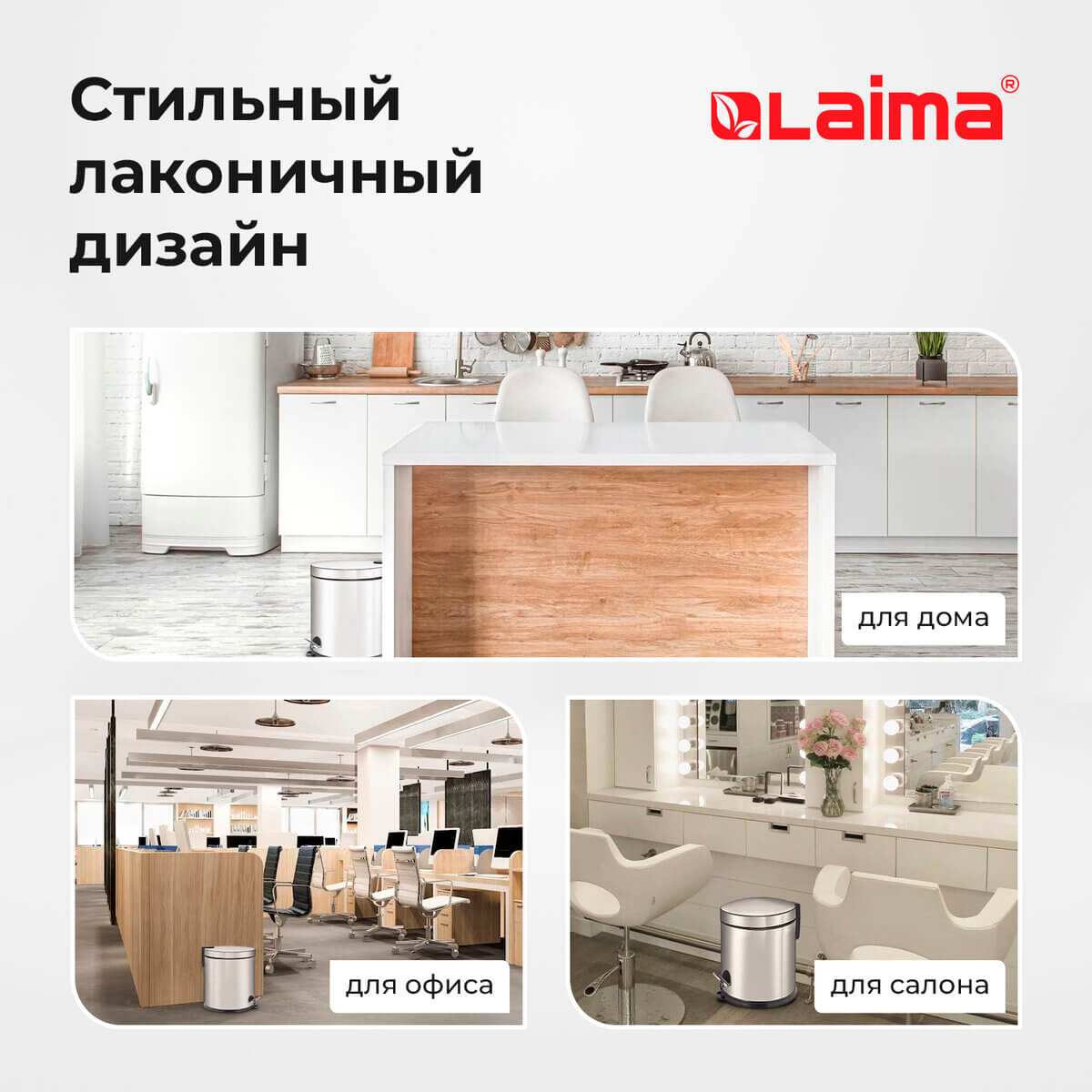 Ведро-контейнер для мусора урна с педалью LAIMA Classic Plus, 20 л, зеркальное в Липецке